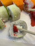 крабовая палочка, икра масага красная, огурец, авокадо, японский майонез, рис, нори (190 г.)