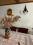На завтрак всегда есть каши, блины, сырники, яичница, сыры и ветчина, солёные огурцы и помидоры, творог, сметана простакваша, соки, чай, кофе, варенье, мед, сгущёнка, хлеб. Все очень вкусно. Гостиница на тихой улице, есть баня с гостинной комнатой на втором этаже, на балконе велотренажёр и беговая дорожка. На территории уютная беседка, детская площадка, есть живой уголок коза кролики куры утки в пруду и караси, их можно половить. Дружный персонал, при заезде наливают наливку собственного производства. Единственное неудобства бывают связанные с водой, иногда слабый напор. На территории можно припарковать автомобиль. Вся территория ухоженная. Рекомендую этот отель.