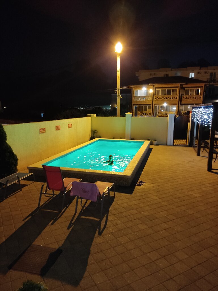 Шикарное место! Приезжал с женой и двумя детьми. Собственники очень доброжелательные и отзывчивые. Из номера на 3 этаже великолепный вид на море и горы, балкон со столиком. Вечером открывается незабываемый вид морской глади и светящегося Новороссийска, сопровождаемый тёплым свежим ветерком. В номере чистота, все необходимые условия(душ,туалет,холодильник удобные кровати, кондиционер).так же приятно отдыхать на территории. Чистый бассейн, лежаки. Огромная кухня и открытая веранда со столиками.До моря(пляжа) не торопясь -15минут. В общем все желаемые впечатления получены в полной мере! Спасибо владельцам за прекрасный отдых для всей семьи.