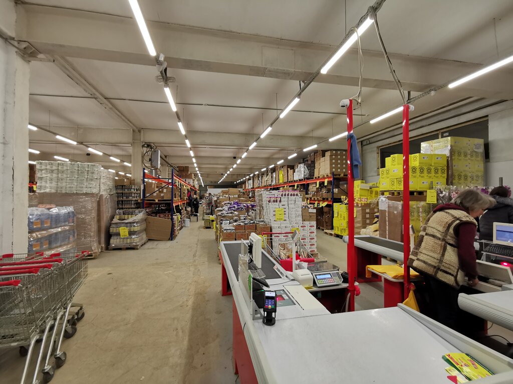 Отличный магазин,внутри довольно чисто(для мест такого типа)товар на стеллажах и поддонах ценники на весь ассортимент присутствует!никогда не бывает толпы!Человек 10-15 гуляют по просторам собирая свою корзину.Всё не плохо,но подъезд к данному заведению,это целое сафари!Вы серьёзно…не можете заказать два КАМАЗа асфальтовой крошки и заделать ямы?3 года пользуюсь товарами данного магазина,подъезд становится всё хуже.