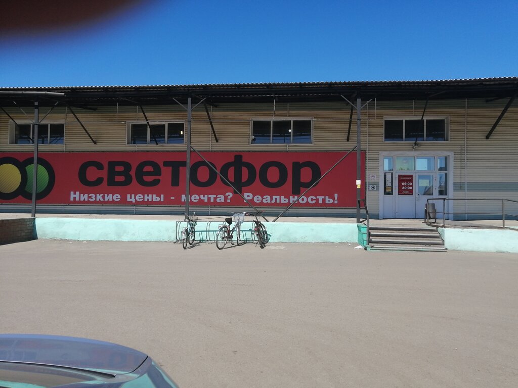 Магазин Светофор удобно расположен, имеется стоянка для автомобилей, пандус, в магазине вежливый персонал, всегда подскажут и помогут, ассортимент магазина очень большой