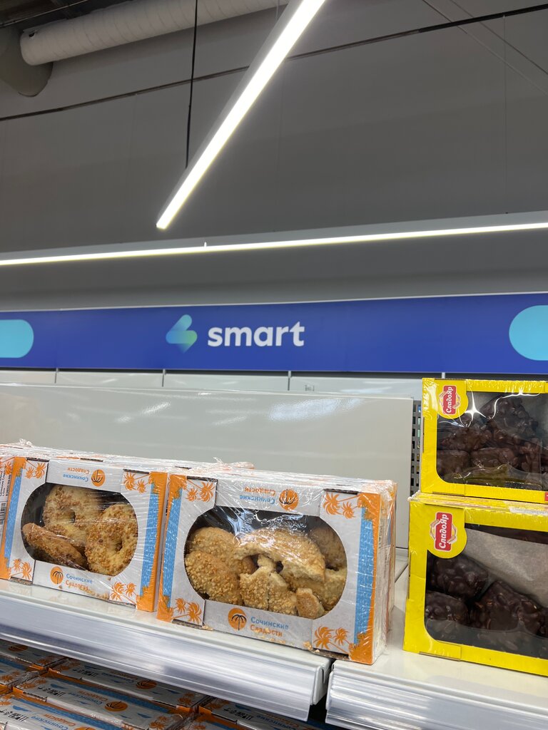 Очень часто бываю в Смарте. Сахарный песок был по 47 руб., дешевле вряд ли найдете в городе. Многие товары дешевле, чем в других магазинах. Кошачий корм Сухой Пурина 1.5 кг в других магазинах более 700 руб, а в Смарте 549 руб. Тортов дешевле чем в Смарте не найдете. Правда их разбирают быстро, поэтому иногда когда надо их нет. Это единственный минус. Мне нравится магазин.