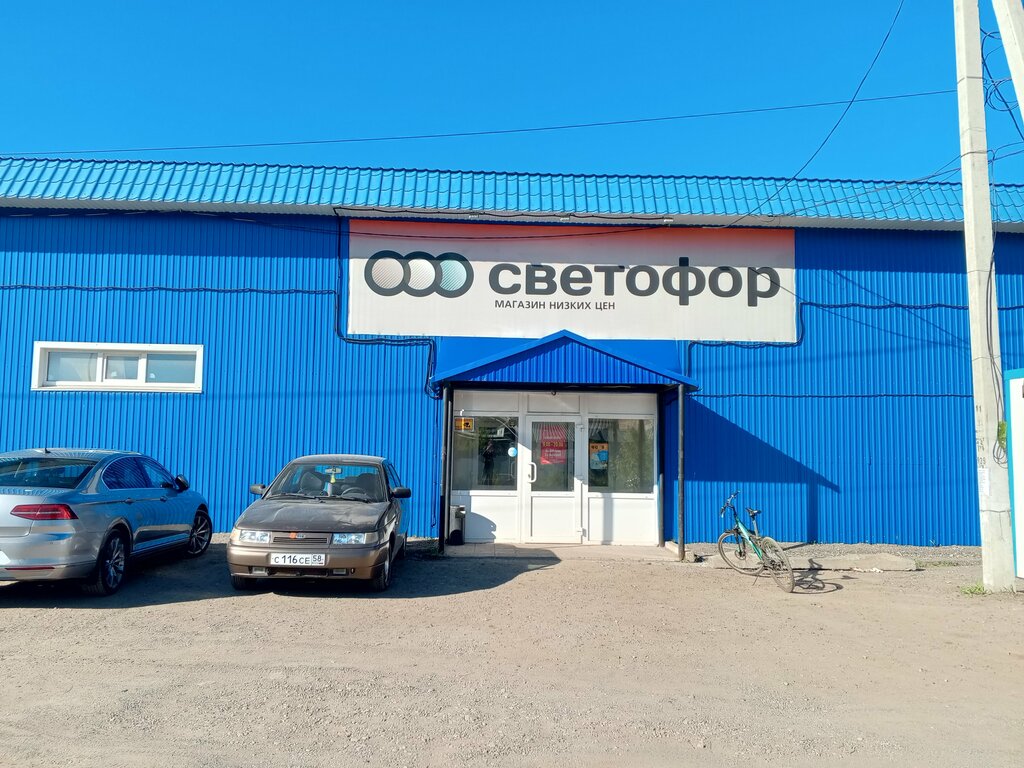 Магазин стандартный, как любой светофор, немного запутанный и замызганный, цены нормальные, все нужные товары есть Но подъезд сюда - это ад какой-то! Яма на яме, и найти его с первого раза, если не знаешь, это целый квест! Ещё раз не приеду из-за дороги, и только поэтому