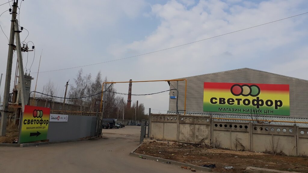 Хороший магазин сети Светофор. Большая парковка. Удобное расположение, 300 метров от центральной улицы города. Внутри удобное расположение товаров, всего четыре ряда и холодильник. Но в связи с этим нет некоторых товаров, которые завозят в магазины побольше, но это не существенно. Продукты разные, и откровенно из заменителей недорогие и хорошие есть недорого, смотрите состав. Много химии нужной, одежда, напитки, автотовары, консервы (кроме тушёнки), посуда, товары для дачи, игрушки и многое другое.