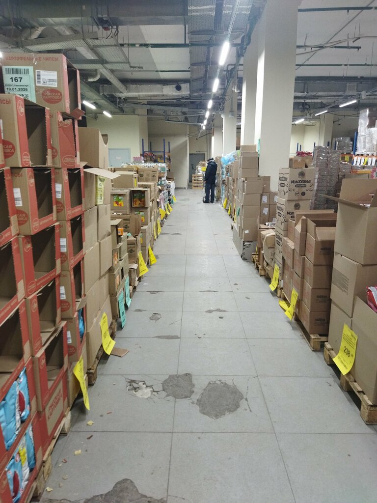 Магазин с большим выбором товаров. Есть проблемы с ремонтом пола. Чисто, но часто какие-то товары рассыпаны. Касса работает одна, скапливается очередь