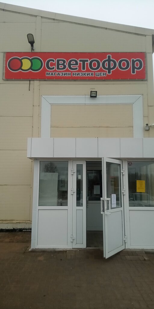 Светофор, магазин который наверно не хуже и не лучше других светофоров, много чего есть. Удобное расположение товаров. Цены приятные. Подъезд к магазину хороший, парковка большая