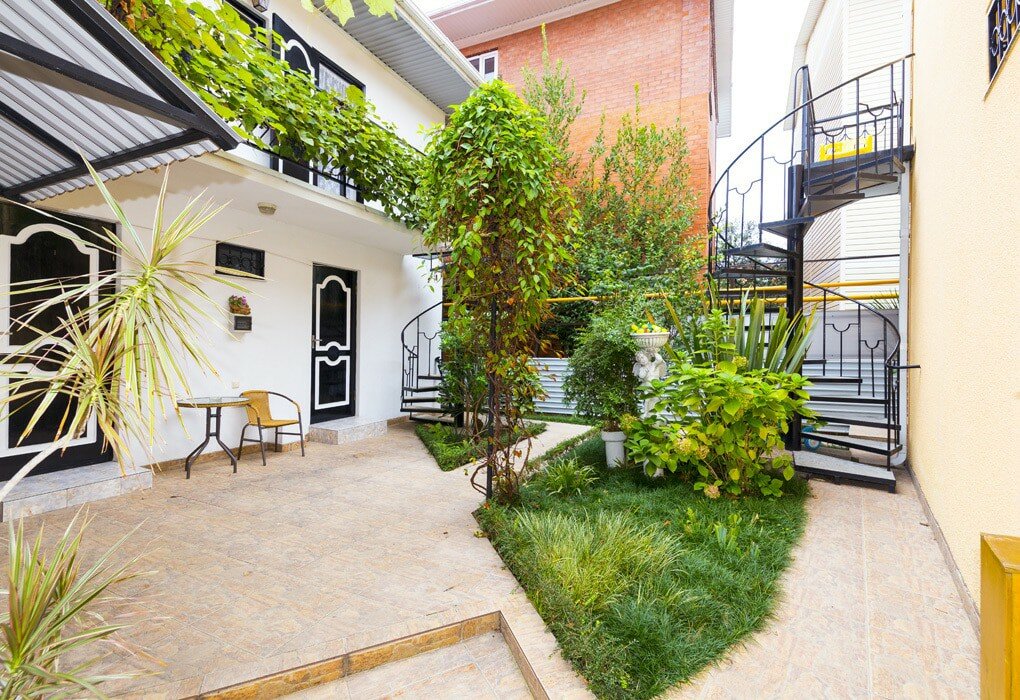 Хозяева пенсионеры. В 23.00 часов на территории гостевого дома должна быть тишина. Комната 12 квадратных метров. Мы бронировали семейный номер за 2 месяца. В итоге когда мы приехали нас заселили на 2 этаж не в семейный номер. Столовая внизу и то можно готовить что нибудь лёгкое. Уборка раз в неделю влажная. Смены белья за 8 дней не было. А всем остальное нам понравилось. До моря идти близко 3 минуты. Столовые все рядом. До центра идти 15 минут.