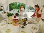 Площадью шатра 200 кв.м. позволяет провести банкет до 120 или фуршет до 200 гостей. Идеальное место для проведения летних свадеб и корпоративов. Есть настил над водой для выездной церемонии.