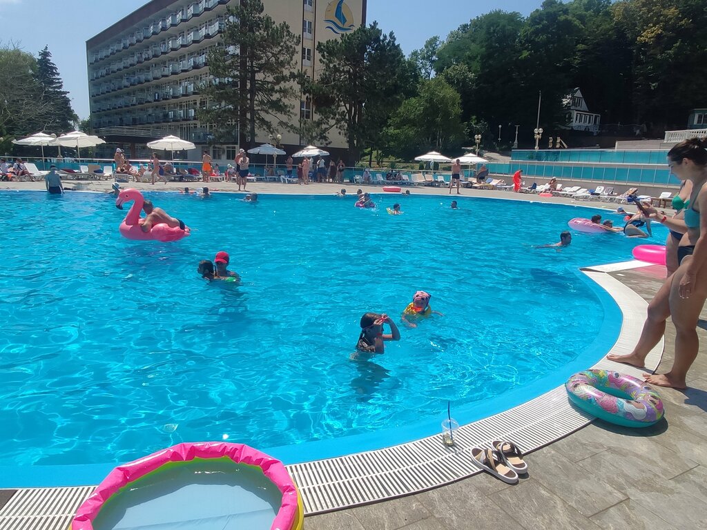 Находится на территории "Парка - отеля Джубга". Чистая, прозрачная вода. Для детей и взрослых. Между шезлонгов круглые столики. Рядом с бассейном коктейль -бар "Точка". Вечером освещается разными цветами, очень красиво. Гости отеля в восторге.