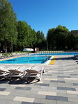 В прошлом году были пару раз на дневном посещении - понравилось. Бассейн был чистый, гостей умеренно. Этим летом приехали в июле - народу - тьма, в бассейне тесно. В итоге, кажется, что уже не то. Больше приезжать не хочется. Наверное, стоит регулировать количество гостей на дневном посещении. Те, кто проживают по путёвкам, видимо, видимо, вынуждены посещать бассейн рано утром или поздно вечером. В остальное время это очень некомфортно. И ещё - над основной массой шезлонгов нет зонтиков. Музыка довольно громкая весь день. Сами больше не поедем летом и не рекомендуем.