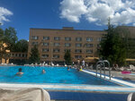 В конце сентября открыли для себя это место, можно приехать гостевым визитом только в бассейн. И неожиданно, оказалось, что открытый бассейн с подогревом. Очень тёплые бассейны, для детей - самое то! Территория бассейна с ремонтом, видно, что всё продумали до мелочей - есть сауны, бани, джакузи, большой и детский бассейн, раздевалки, душ, туалет. Перекусить тоже можно👌🏻 Сентябрь 2024 - вход в бассейн взрослым 1500, детский - 300/500 Территория санатория облагораживается, восстанавливается, интересно, что получится в итоге 🤗