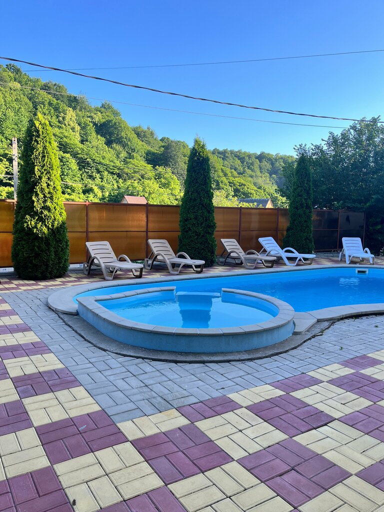 Зачёт,хозяева приветливые,домик чистый уютный и вместительный,подойдёт как для большой компании так и для двоих,басейн чистый каждый день чистится,заполняется водой,есть мангальная зона,шезлонги,с одной стороны отвесная скала,с другой вид гор с деревьями,красота и от моря 10мин ходьбы,и енот в гости захаживал)