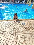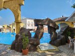Бассейн достаточно большой, удобно что есть зоны с разной глубиной, для разного возраста. В центре есть островок, с которого дети прыгают в воду. Вокруг шезлонги для комфортного размещения.