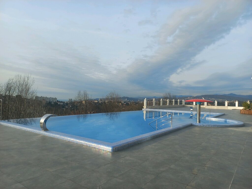 В бассейне не купался, но комплекс очень понравился. Виды открываются просто шикарные. Единственный минус если пешком очень крутой подъём. Но это не большой минус, а в остальном всё супер. Есть зона отдыха, спорт площадка, тренажёры, беседки с мангалами. Море, рынок, магазины, транспортная развязка всё рядом.