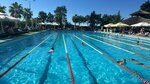 Проживали в гостинице Жемчужина в конце октября, ходили в бассейн бесплатно каждый день. Вода солёная, тёплая и чистая, народу обычно всегда много, но если выбрать время когда идёт завтрак и ужин, то можно плавать намного свободнее. Иногда приходят группы на обучение плаванию, нам не мешали, обычно занимают не крайние дорожки. Бассейн глубокий, для спортивного плавания, минимальная глубина 2,2 метра. По крайним дорожкам есть бортик для ног, чтобы встать и отдохнуть.