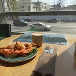Приятный и приветливый персонал, вкусный кофе, хорошее меню для завтрака или лёгкого перекуса. Поесть, к сожалению, не довелось, но кофе отличный: брал американо, небольшая кислинка присутствует, хорошее послевкусие. Судя по всему ребята сами занимаются обжаркой. Спасибо и успехов в дальнейшем развитии!
