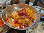 Куриное бедро, репчатый лук, укроп, зерна граната, кинза, лаваш