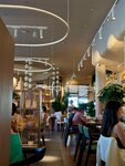 Очень хотела посетить, потому что открыл Новиков, у которого классные заведения в спб, но осталась недовольна. Заведение красивое, люди сидят не плотно, открытая кухня, поэтому громковато. Еда оставляет желать лучшего( ценник для Барнаула не маленький, но подача грустная, как и вкус. Ребра подаются с салатом коул слоу, обычно его заправляют чем то по типу уксуса или масла, тут что то пошло не так и салат я есть не стала потому что он промто горький🤷‍♀️ + он с перцем острым, о чем меня не предупредили. Подачу видно на фото, как по мне, не особо привлекательно) еще пробовала пасту с рыбой, не солено не перчено, никак. Оливье тоже самое, пресный. Салат подавался с красной рыбой, которая на вид была как будто она только размороженная, розовая и пресная опять же. Десертов куча, есть все и в разных вариациях. Фондан просто 😖 почему то он подается в кружке?? Никакого тебе шоколада внутри и кекса. Это сахарная бомба. К сожалению не сняла, но кекс мне принесли сырой, это была жижа. А вот медовик мы оценили! По напиткам ничего необычного. Айс кофе вообще мало где вкусным делают, тут просто водичка и кофе. Апельсиновый фреш за 600р думаю хотя бы не должен быть похож на сок магазинный) Отдельное спасибо за обслуживание, внимательное и обходительное!