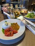 Отличный ресторан! Обедали семьей, почти все блюда понравились, подвела паста с крабом - постная и сухая( Обслуживание быстрое, очень внимательный персонал. Официантка рассказала про каждое блюдо, помогла с выбором, учитывая предпочтения каждого гостя! Есть небольшая игровая с ТВ. Очень большие порции с десертами! Удивила панакота, нежная и в меру сладкая с добавлением свежих ягод👍