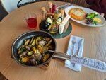 Честно не очень люблю оставлять плохие отзывы, но... Сегодня реш ли с коллегой пообедать в ресторанчике, пришли, нас добродушно встретили, хороший интерьер, вопросов нет. Красиво оформлены блюдо со шницелем. За это 2 звезды, перехожу собственно к ситуации: -не было бейджа с именем официанта -долгое ожидание еды 40мин -нерегулируемая нормально музыка, которая мешала общаться -ужасно невкусные основные блюда Жирный картофель с сухой печенью дал сбой моему желудку до рвоты, без преувелечений. Коллега не смогла съесть шницель т к 1мм мяса и 2см теста, жирного до боли... Вкусный был только морс и брокколи всё! Если вы неизмените приготовление и скорость пожачи, боюсь репутация может поползти вниз...