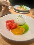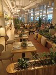 Были с подругой в ресторане 01.11.2025 в период примерно с 13:30 до 15:30. Заказали треску с мини овощами по неаполетански, халлуми на гриле с вялеными томатами, фокачу со страчателлой и фисташками, салат из рукколы, кабачка, шпината, огурца. Из того что заказывали более-менее понравилось блюдо Халлуми с вялеными томатами. Салат зеленый был пресный и сухой. Да на столе стояло оливковое масло и бальзамический уксус, но всё- же хотелось чтобы изначально заправки для салата было достаточно. Салат на двоих даже не доели, так как был пресным. Треска (маленький кусочек- мужчинам будет очень мало) с непонятным и не подходящим к этой рыбе соусом. Соус был похож на вкус на подливку от мяса. С рыбой не сочетаемая. Фокача со страчателлой тоже была пресная показалось что не доготовлена, тоже не доели. Общее впечатление от еды- «не вкусно», может другие блюда вкуснее, но из заказанных нам понравился только халлуми и всё. Обслуживание было нормальным, до тех пор пока на вопрос: понравилось ли нам блюдо?, мы ответили: Нет, не вкусно, официантка стала разговаривать с неохотой и недовольным лицом. А вишенка на торте, когда мы уходили, официантка которая нас обслуживала, стояла возле выхода и даже не соизволила сказать: «До свидание». Итог: интерьер приличный понравился, много живых цветов на 5, на этом плюсы закончились, ведь мы хотели вкусно покушать и не смотреть на недовольное лицо официантки. Кроме того, не понравилось что в меню отсутствует вес блюда и его состав. Прилагаю фото трески и фокачи со страчателлой. Они сильно отличаются от картинок с сайта ресторана. Своим знакомым рекомендовать этот ресторан не будем. Еда на 3, Интерьер на 5, обслуживание на 3.