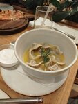Обед в будний день. Приятный интерьер, кондиционер, удобные стулья, наполнение зала не более трети, комфортно. Салат помидоры-руккола-страчателла, куриная лапша и паста с креветками и страчателлой. Мне было вкусно. Порции реально большие, с риском переесть)))) подача без затей лишних, продукты понятные, Страчателла очень свежая, и ее много, помидоры настоящие вкусные, руккола ароматная, креветок в пасте много. Обслуживание быстрое, сама просила блюда по готовности, поэтому когда лапша появилась перед салатом - это было даже плюсом. Эспрессо вкусный! Минус один - небюджетно, но, конечно, ожидаемо в этой сети ресторанов.