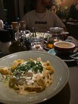 Уютно. Вежливый персонал. В пн! При низкой посадке пасту с морепродуктами за 1600₽ ждала 30 мин минимум. Принесли слегка теплую и сверху уставшая от жизни петрушка…петрушка…ну это же не столовая, чтобы уставшей вялой зеленью сверху посыпать.