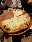 Классное место на втором этаже, есть как островок, так и отдельный зал, столов много, посетителей тоже. Очень вкусная еда, порции неожиданное большие, настолько что привычный заказ частично пришлось запаковать с собой. Музыка была довольно громкой, но в субботу это скорее всего для того что б люди не засиживались, т.к за время трапезы люди вокруг сменились, так что популярность этого места имеется. Вначале подают очень вкусный мягкий хлеб. Пицца 4 сыра просто улет, дровяная печь и вкусный сыр делает свое дело на 150 процентов. Одно из лучших мест в авиапарке