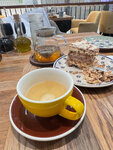 Был впервые. Не разочарован. Теперь по порядку. Был в понедельник. Столик заказал по телефону на 18-10 без проблем. Были предложены варианты. Остановился на столике возле окна. Заказ приняла девушка очень быстро. Обработка заказа и доставка, тоже, выше всяких похвал. Сервировка стола достаточная. Теперь относительно заказа. Горячее и салаты не брались, поэтому высказываю мнение только по заказу. Кофе макиато (60мл). На меня произвел впечатление и бодрящее воздействие (заснуть не получилось часов пять). Сыр рикотта (100гр) белый со вкусом сливок. На десерт - крем из домашнего сыра с пралине и малиной. За все блюда моя признательность производителям продуктов и поварам. Ну, и, есть один отрицательный аспект, про который говорили другие посетители - громкая музыка. Так, что если пообщаться, тогда лучше выбрать другое место. Снимать звезду не стал.