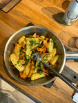 Просто ужас! Была в заведении пару лет назад, все было нормально. Пришла вчера с друзьями, нас было 8 человек, официанта дали явно новенького, и такое ощущение, что он в принципе официантом только устроился. Абсолютно неловкий парень, разговаривать с гостями не умеет, блюда кому какие не запоминает со словами "ну вас так много, это просто невозможно", названия блюд из меню не знает. В общем, впечатление ужасное уже только от обслуживания. Заказала картошку жареную, она была слишком твёрдая и абсолютно не солёная. Котлетки куриные хорошие, паштет тоже, это могу рекомендовать. Просьба руководству обратить внимание на персонал!
