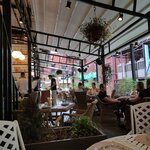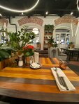 Были в дневное время,, администратор встретила с улыбкой ,предложила на выбор места в зале или на веранде! Мы выбрали на веранде, погода позволяла. Место атмосферное и уютное, красивая посуда, обслуживание быстрое, вежливое. Заказывали на горячее пасту -порция большая , красиво оформленная, все было вкусно, но почему подали остывшим. К чаю взяли десерты банановый брауни, и бакский чизкейк- это шедевр вкуса! Очень понравились ! Очень вкусно! Спасибо!