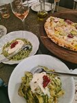Сыры отличные, буррата нежнейшая, со сладко-сливочным вкусом. Непонятная подача с половиной томата и слайсом печеного перца - теперь такая композиция именуется «салат»?) Папарделле с песто и креветками не понравилась, слишком аль-денте:) страчателлы было 10 грамм, чайная ложка. Оригинальной колы не оказалось в заведении. По сервису тоже есть косяки, но незначительные.