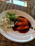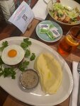 Были с супругом впервые в этом месте, попали случайно и решили поужинать. Я заказала куриную печень с картофелем на сковороде. Скажу честно, от печени я многого не ждала, мне нравится всего несколько вариантов ее приготовления. Я не знаю как они ее готовят, но получается у них невероятно, она настолько нежная, что прямо тает во рту, по текстуре печень нежнее паштета. Получила невероятное удовольствие. Также заказала салат из помидоров с луком, в целом очень люблю это сочетание, поэтому часто заказываю его в разных местах, следовательно есть с чем сравнивать. Вкусно! Сами помидоры свежие, зрелые, сладкие, сочные и ароматные, а в прикуску со свежим хлебом, который подают в качестве комплимента, получается какое-то космическое сочетание!