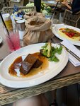 В заведении очень приятная атмосфера с живыми растениями. Блюдо было вкусным, мясо таяло во рту, официант был очень приветливым. Так понравилось место, что купила еще и сыр на входе.