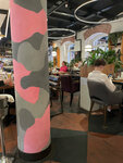 Место визуально довольно приятное. Но безобразные колонны камуфляжной расцветки выглядят чужеродно и жалко, особенно розовая. Насчет еды всё тоже неоднозначно. Запеченный камамбер был прекрасен, а вот грибное ризотто мало того, что из полусырого риса, так и вид очень отталкивающий, словно из столовой для дальнобойщиков, Половины десертов нет в наличии. В лимонаде льда больше половины стакана. Повара в основном из бывших союзных республик. Официанты плохо знают меню. В целом есть масса заведений более высокого уровня в этой ценовой категории, чтобы сюда больше не возвращаться.