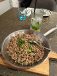 Печень куриная была восхитительна, если любите субпродукты - заказывайте , не пожалеете. Десерты также понравились. Как заметила, блюдо "гречка с уткой" часто заказывают, но попробуйте присмотреть что-то интереснее, так как на вкус блюдо простовато, за счёт того что утка разорвана по волокнам и гречка мягкая, текстуры смешиваются и не подчёркивают друг друга. Также отдельный вопрос к ресторану - подскажите производителя чудных тарелок с гусями по краю, которые вы используете, очень уж хочется найти.