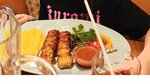 Брали шашлык из курицы, пиццу Маргариту и Сибас на углях. В е очень понравилось! У пиццы правильное тонкое тесто и томатная паста с большим количеством сыра. С собой взяли десерт « птичье молоко» для домашнего чаепития. Десерт очень нежный и самое главное не приторно сладкий. Остались в отличном настроении после посещения ресторана