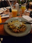 Завтраки восторг!Брали вафли с лососем,и хрустящие яйца-очень очень вкусно.Порции большие,принесли очень быстро,приятные хостес и официанты.