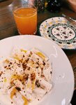 В целом все очень понравилось, очень классная веранда, вкусные блюда, но ооочень сильно разочаровал брауни с бананом, который мы взяли с собой с витрины на выходе, одни бананы, порезанные очень толсто, высокий слой бананов смазанный шоколадом, сам брауни не чувствуется совсем (
