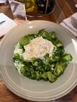 Скорее 3,5 чем 4. 4 только за оливье с семгой без морковки. В полупустом заведении 5 официантов болтают, сидят в телефоне и вообще не реагируют на гостей, время 19+. Подошли к столику только через 15 минут, за это время можно было принести вино и ждать заказ. Меню грустное. Салат с лисичкам и картофелем из сезонного меню- пушкабомба и спас впечатление.