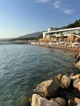 Пляж находится в самом центре бухты Хорошие лежаки с матрасами , возможность заказа еды к лежаку , нет толпы Вода практически всегда чистая По ценам в целом для ресторана и расположения пляжа ожидаемо - на целый день 3 тыс руб шезлонг