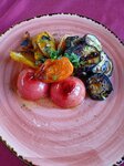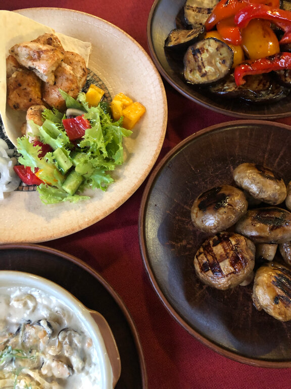 Меню небольшое. Но все мои выбрали по предпочтениям и рыба есть, и мясо. Алкоголя нет, видимо, можно с собой. У нас даже была бутылочка в багажнике. Но, милая девушка официантка предложила попробовать домашнее вино, которое у них скоро появится в меню. Кто же откажется 😁? К слову, очень приличное красное сухое вино 👌 Заказывали много всего Цезарь с курицей , салат Крымский с ароматным маслом, тут все хорошо. Фрикасе из рапанов - нежнейшее мясо в сливочном соусе 🔥 Барабулька, куда же я без нее. И хоть она была мелковата, но очень сочная и ароматная. 🔥 Драники с семгой и креметтой - это было очень красиво . Беспроигрышная комбинация ингредиентов, вкусно 👌 Люля кебаб свино-говяжий, был повторно заказан на бис. Нежно, сочно, с дымком в аромате 🔥 Шашлык куриный в беконе, первый раз пробую, очень интересно! 👌 Ну и коронное блюдо нашего праздника - стейк из черноморской камбалы на мангале. Это волшебно 🔥 Цены отличные.