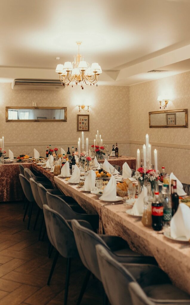 A wonderful fashionable country restaurant. Cozy territory. Varied and delicious cuisine. Administrator Vadim and his colleague Roman work professionally, it is rare to find such service anywhere. The administration provided a shuttle service for guests and karaoke as a gift. We no longer have any hesitation where to celebrate the next holiday. We had 35 guests, the hall can accommodate up to 60 people. There is an elegant tent for up to 160 people on the territory. It was comfortable for both children and elderly guests. I also recommend that you definitely have a photo shoot there, everything is very stylish and refined.