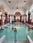 I was in these baths about ten years ago, and now I'm back, but with my family. Well, nothing has changed, but a lot of things already require repair and replacement. Yes, the baths are known all over the world and they are shown a lot on TV. There are many pools with different water temperatures and the content of useful components. Of course, you can't improve your health at one time, but you can relax and unwind after long walks around Budapest. There are a lot of people, as can be seen from the photos. It took a long time to find and wait for sun beds.