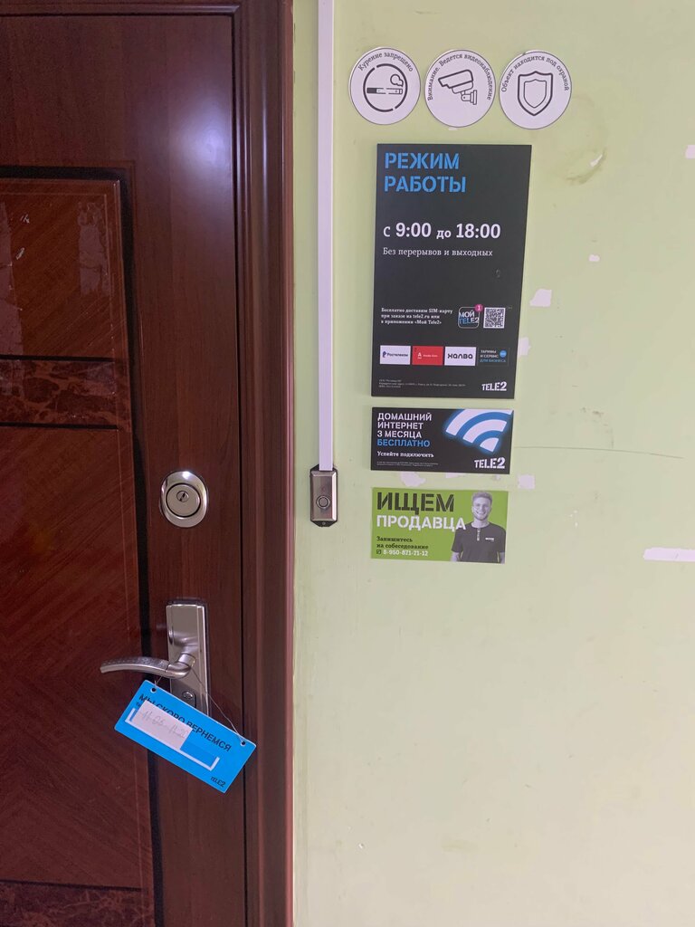 К сожалению теле 2 был закрыт, на табличке написано перерыв 15 минут, но в режиме работы написано без перерыва и выходных ,на сайте так же нет информации о перерывах , пришлось ждать 15