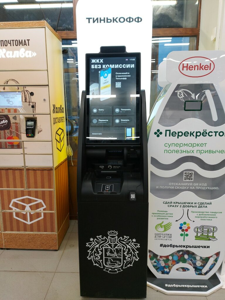 там много разных магазинов, но Тинькофф в Перекрестке