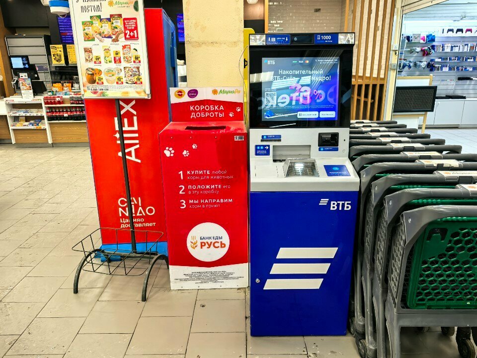 Не принимает купюры, сколько танцев с бубном ради одной несчастной тысячи. Сзади метромаркета есть торговый центр, зайдите с главного входа до продуктового и сверните на право. Там будет нормальный, а главное исправный банкомат.