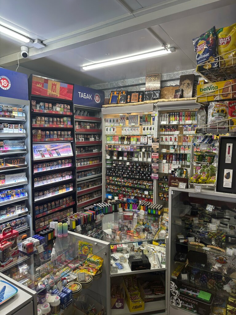 Хороший магазин. Большой ассортимент. Есть из чего выбрать.Вежливые продавцы.Есть кальяная продукция. Мне нравится время работы. Утром идешь на работу он уже открыт. Вечером возращаешься, а он еще открыт.