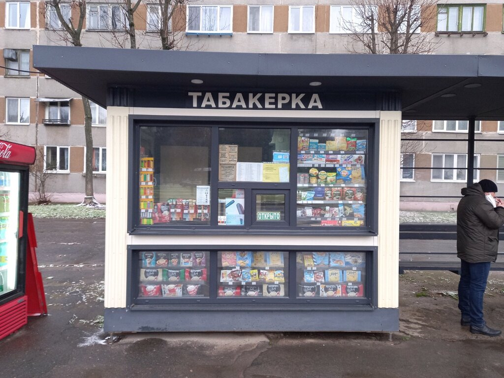 A stall with various types of tobacco products, but there are also drinks and sweets, in general everything that is harmful is all there)
