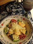Не очень хочу рекламировать этот ресторан,потому что хочу бывать там как можно чаще,и чтобы в этом прекрасном заведении всегда было свободно!😀Но не могу не быть благодарной за сегодняшний прекрасный ужин!Душа так и просит написать об этом удивительном вечере .Мы подругой окунулись в такую душевную атмосферу маленького уголка Грузии в самом сердце Петербурга.А кухня!Превзошла все ожидания .Уж если написали в меню Шкмерули -то это настоящий дивный цыпленок в аппетитном сливочно-чесночном соусе.А какой нежный хрустящий баклажан!С тоненькой корочкой.Про хачапури.Ну уж как нас сложно удивить этим уже довольно привычным и прочно вошедшим в нашу жизнь блюдом.Но и тут ресторану удалось удивить нас своим фирменным хачапури с грушей и медом.Такой необычный ,но невероятно сбалансированный вкус.Наверное,если взять только этот хачапури ,то можно сразу получить удовольствие от ужина ,ведь это и основное блюдо и десерт одновоеменно .Ждем новой встречи с этим рестораном,чтобы еще ознакомиться с другими блюдами меню.А еще хочется еще раз быть желанным и обожаемым гостем!С таким гостеприимством последний раз я сталкивалась только в самой Грузии.